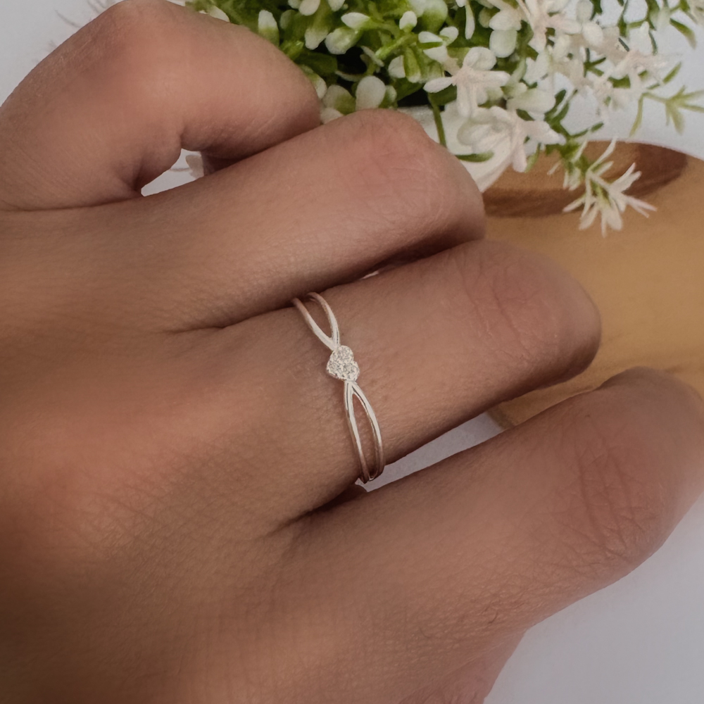 Anel Aro Duplo com um Mini Coração com Zircônia Prata 925.