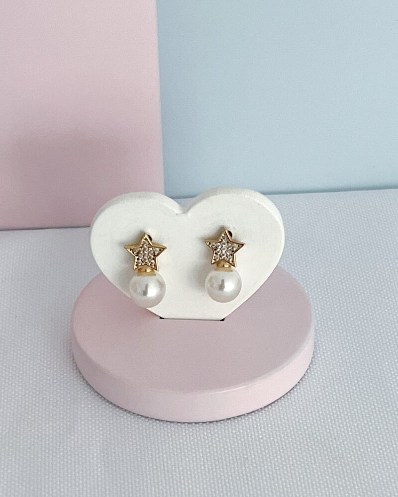 Brinco Infantil Estrelinha Zircônia e Pérola-1cm