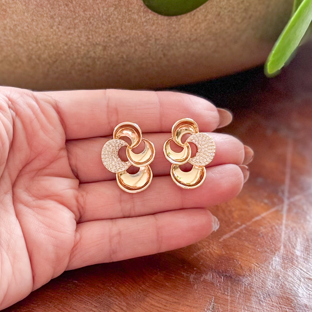Brinco Estilo Colméia Detalhe Cravejado- 20x25mm.