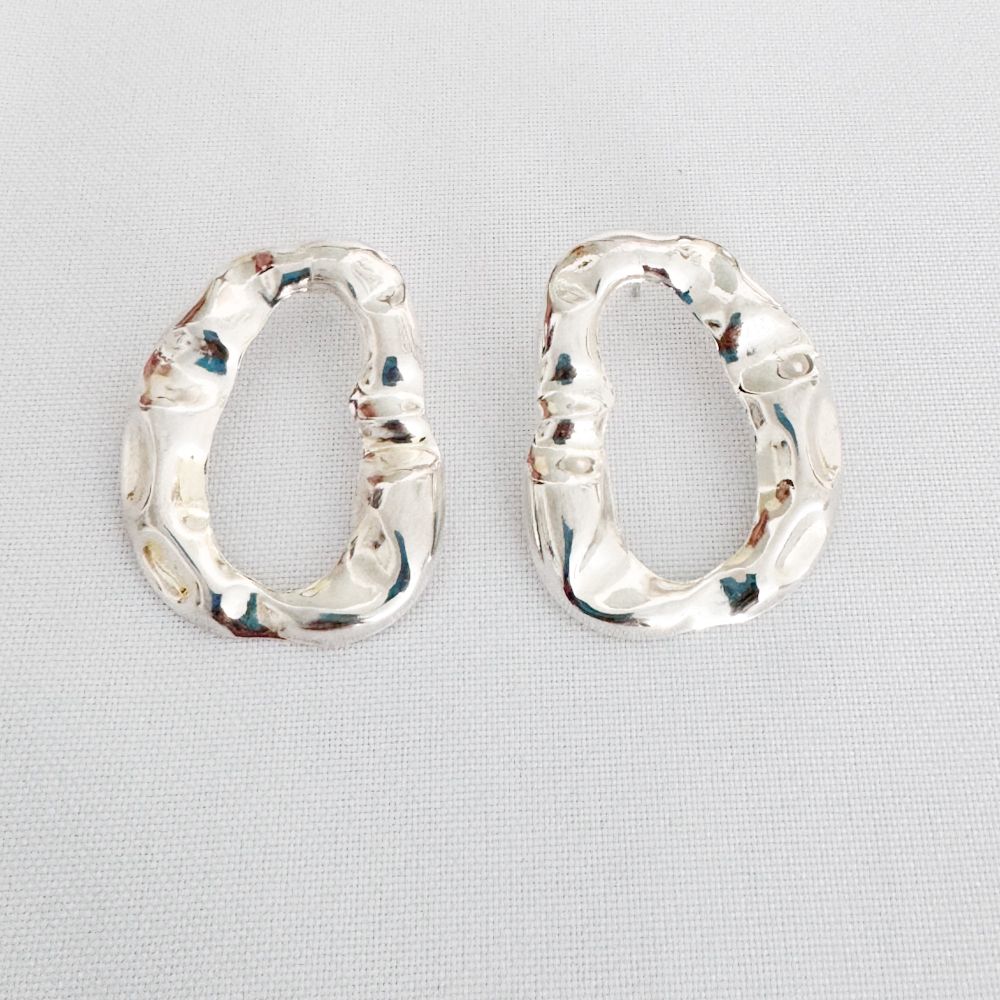 Brinco Orgânico Banho de Prata Grande, Tamanho de 3,5cmx2,5cm