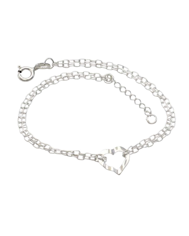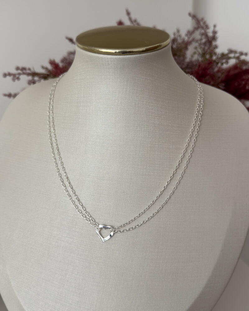 Colar Corrente Dupla Pingente Coração Vazado Prata 950-45cm
