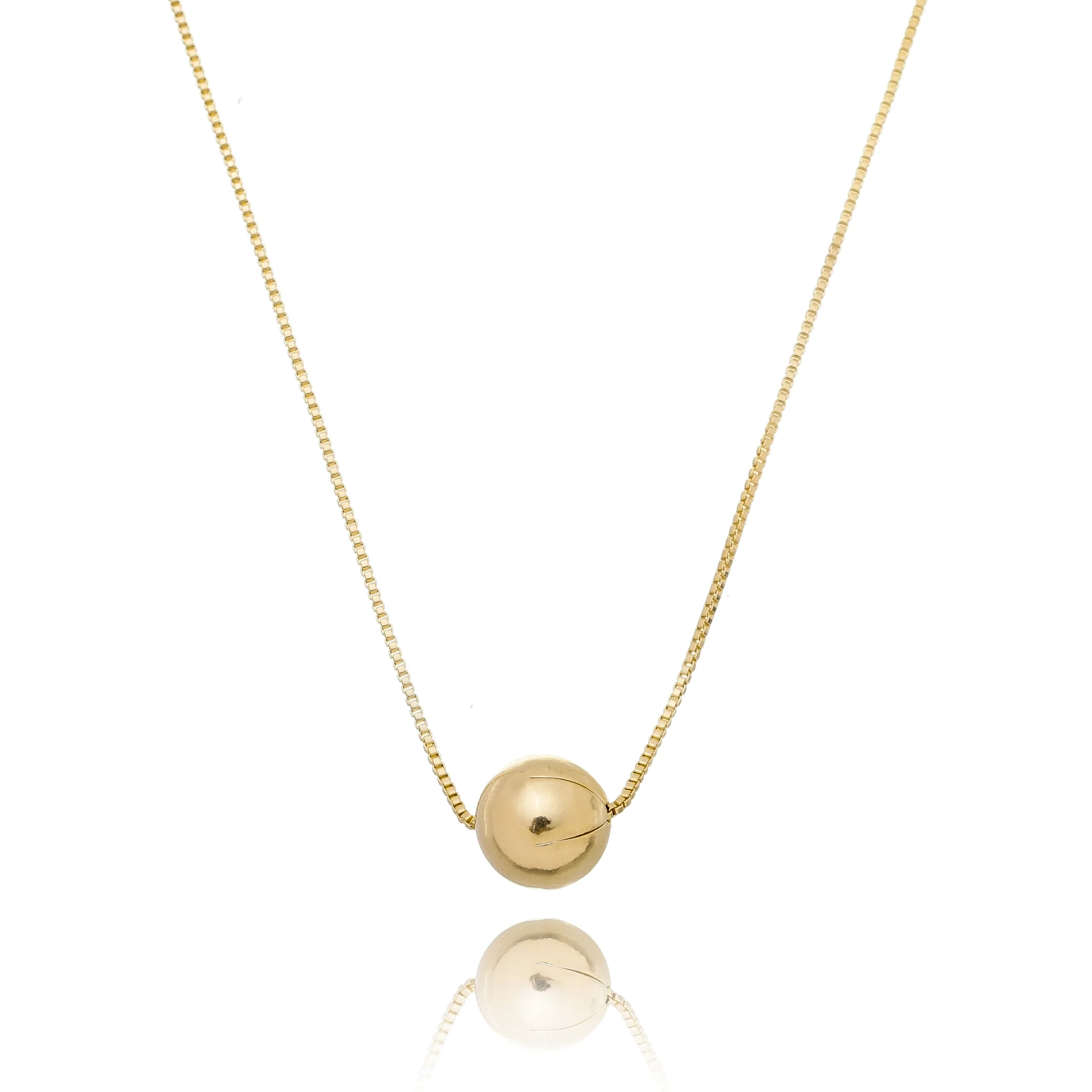 Colar corrente veneziana 45 cm, pingente de bolinha lisa.
