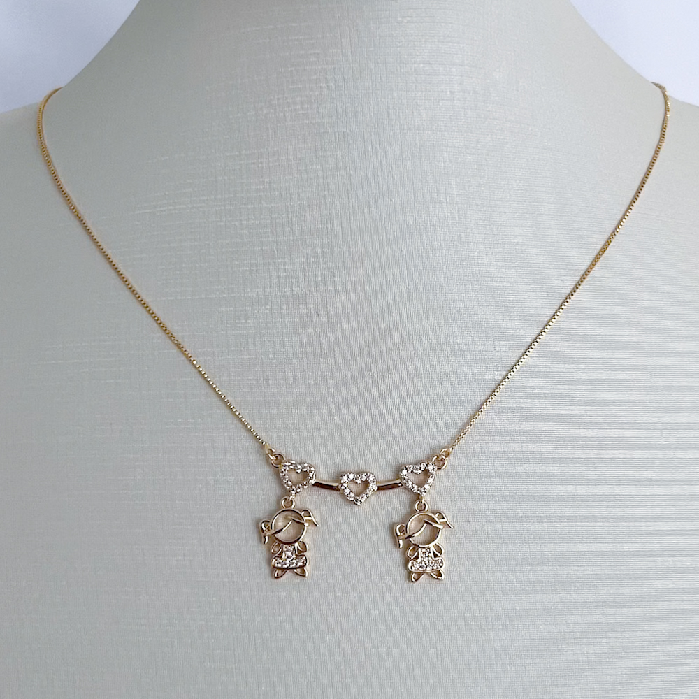 Colar Canga 2 Meninas Coração Zircônia-50cm