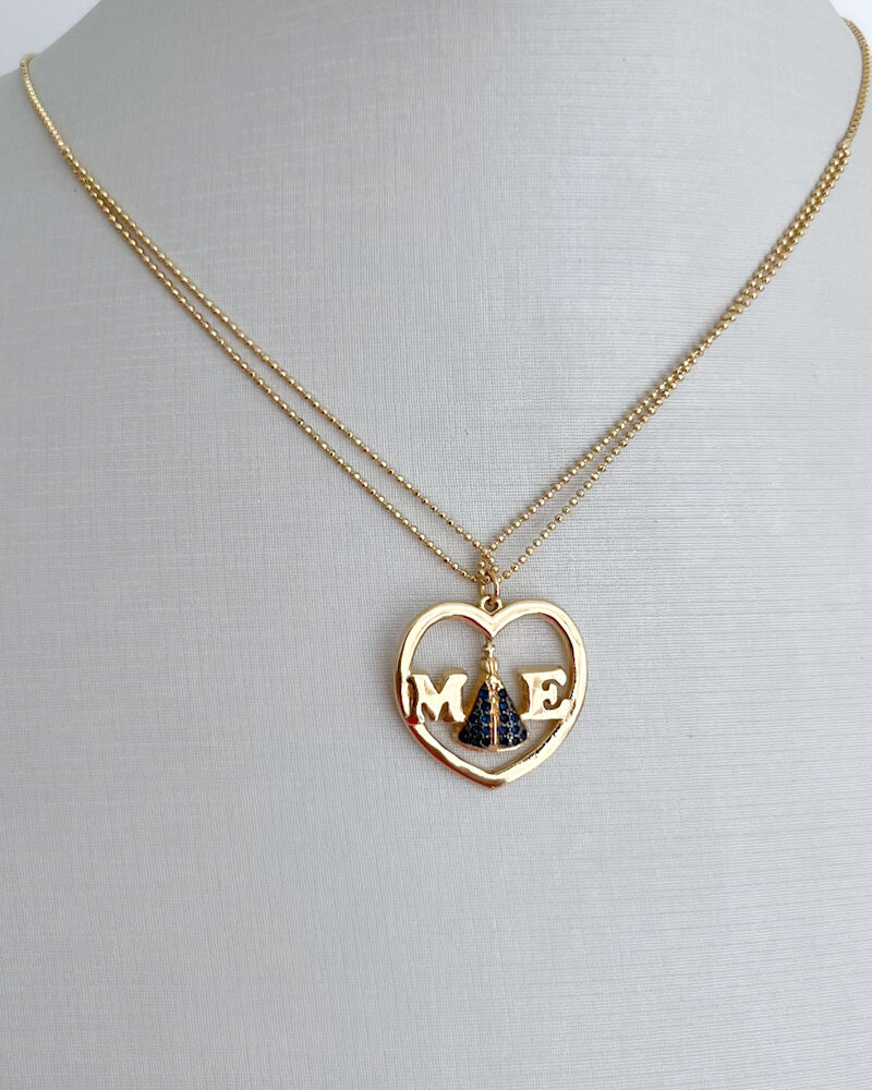 Colar Coração Mãe Letra A Nossa Senhora-45cm