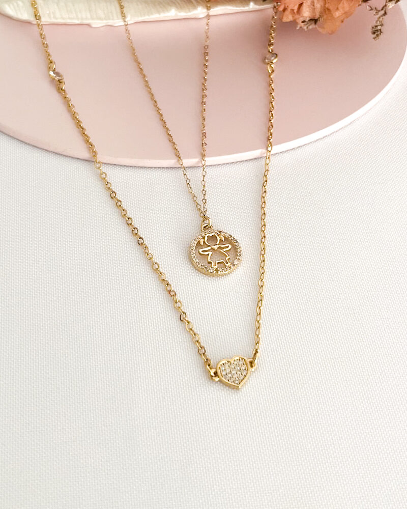 Colar Duplo Coração Zircônia e filho