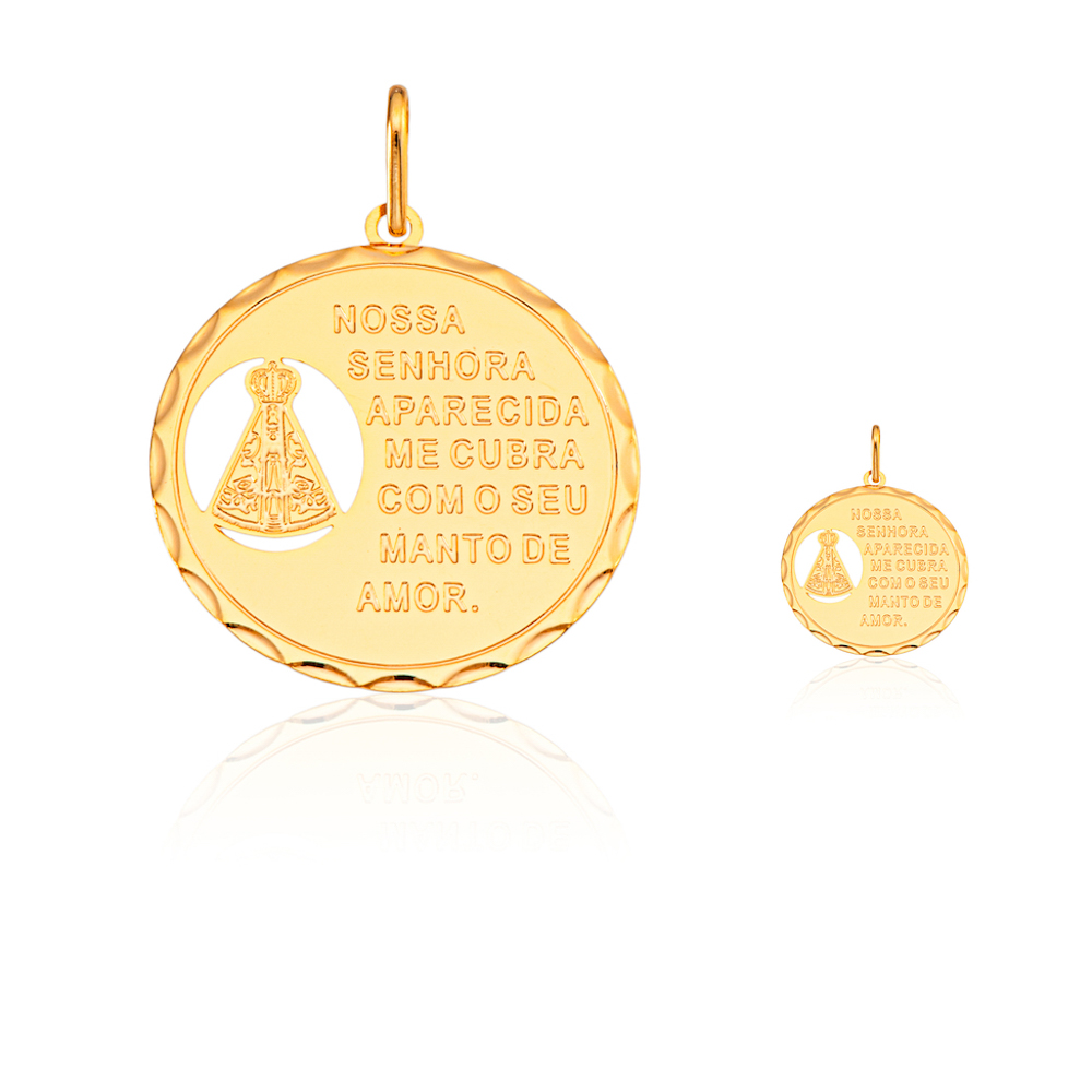 Pingente Circular Nossa Senhora Aparecida Com Dizeres.