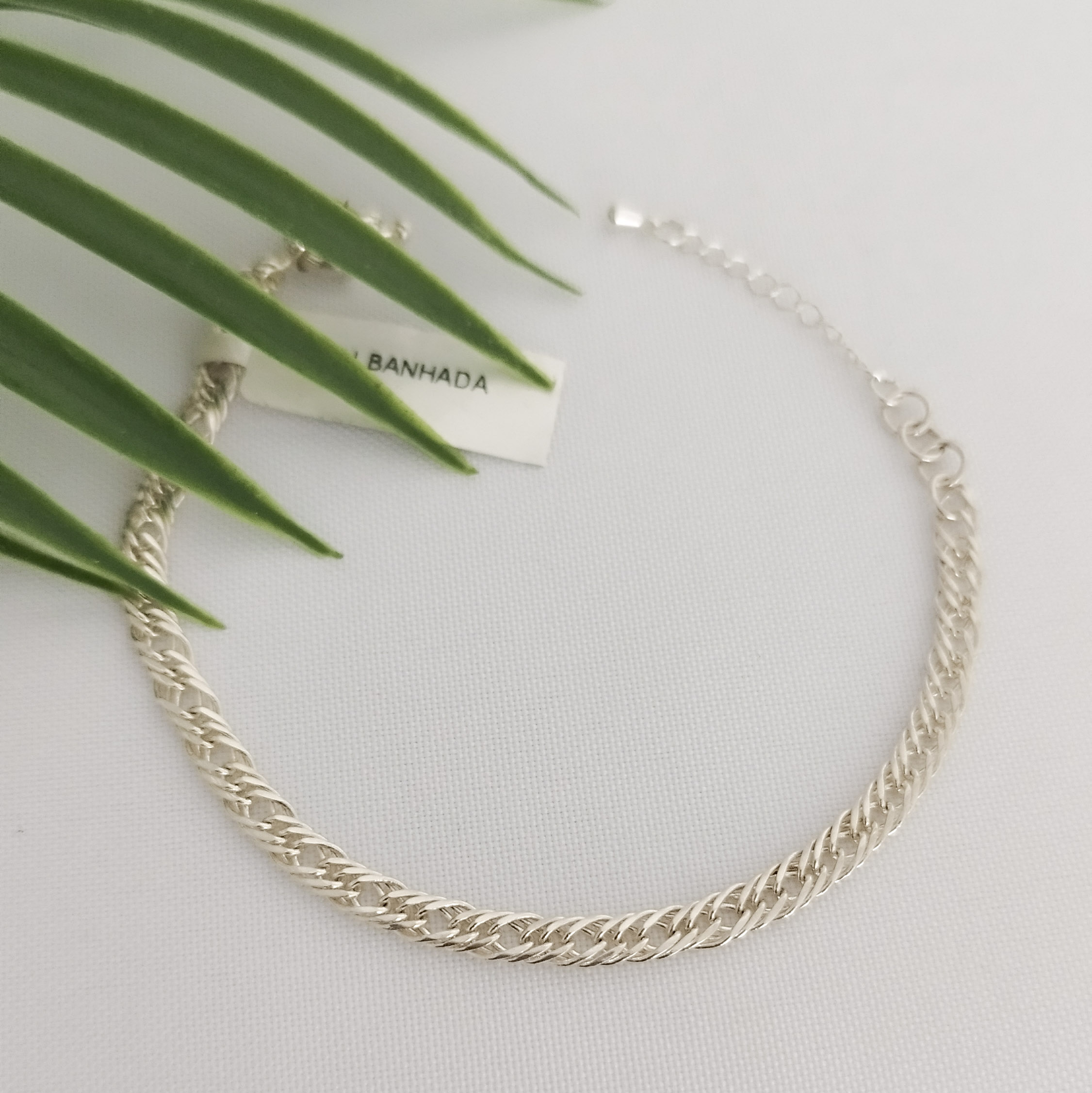 Pulseira Banho de Prata Trançada Tamanho 20cm com extensor.