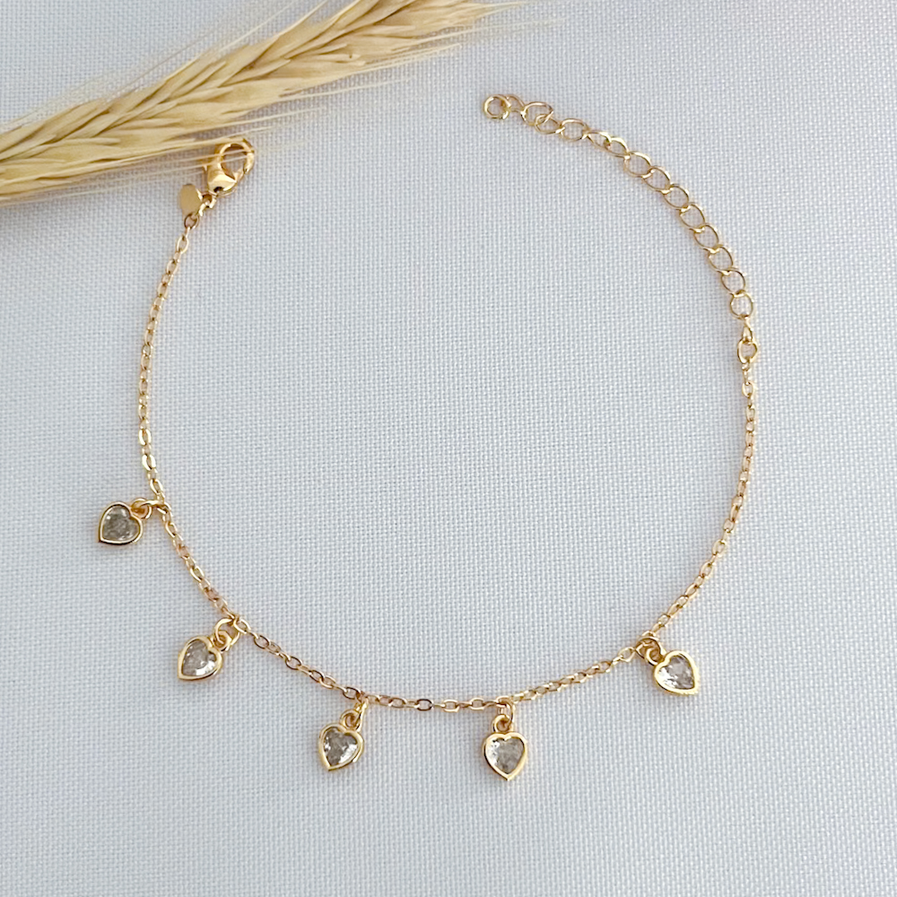 Em até 5x de R$ 19,98 sem juros R$ 89,91no PixEconomize R$ 9,99 no Pix Pulseira Corações Cristais-18cm