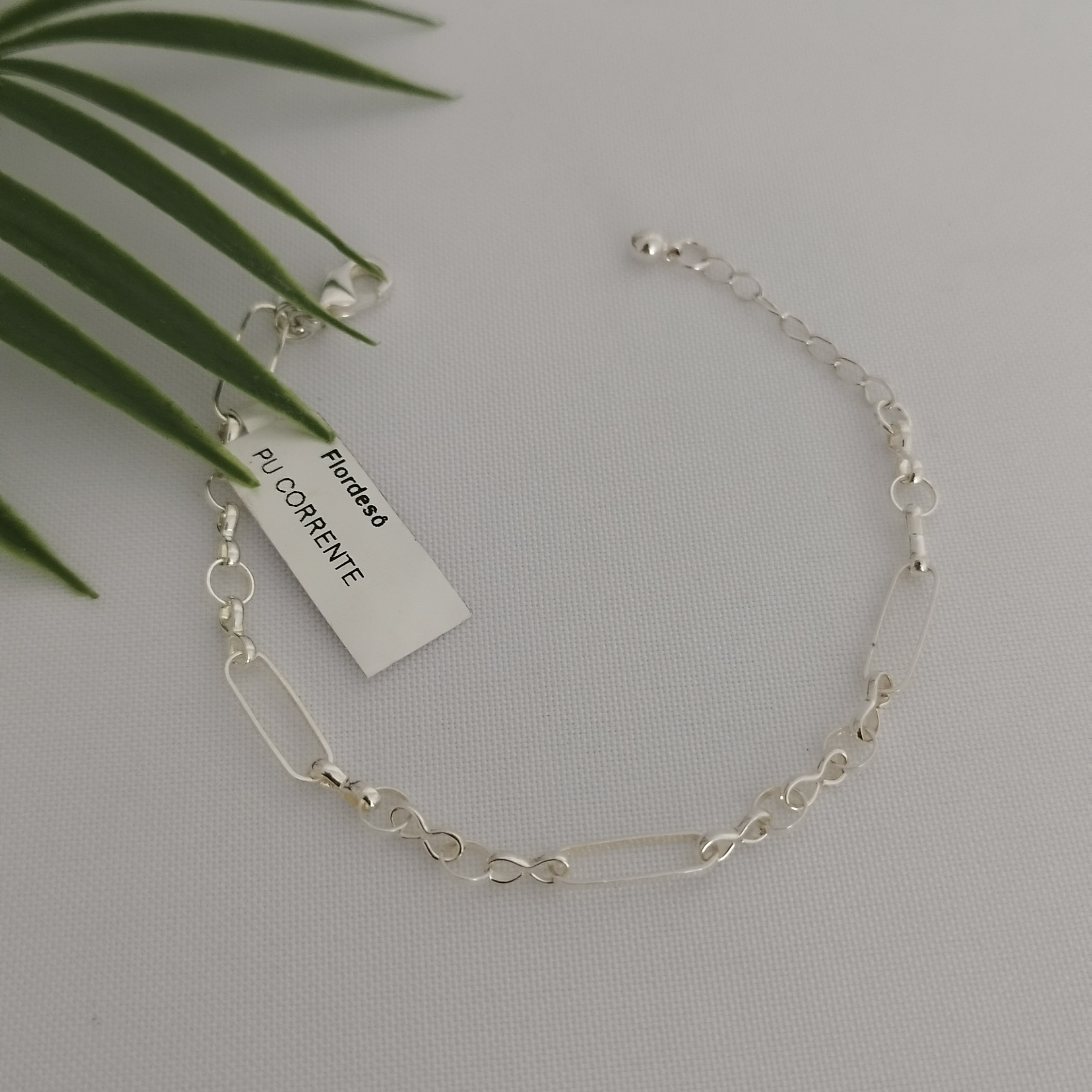 Em até 5x de R$ 23,40 sem juros R$ 105,30no PixEconomize R$ 11,70 no Pix Pulseira Elos Pingente Folha Banho de Prata-20cm