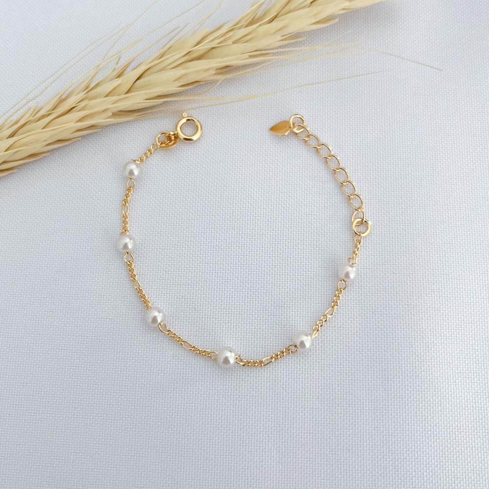 Em até 5x de R$ 17,60 sem juros R$ 79,20no PixEconomize R$ 8,80 no Pix Pulseira Infantil Pérolas-16cm