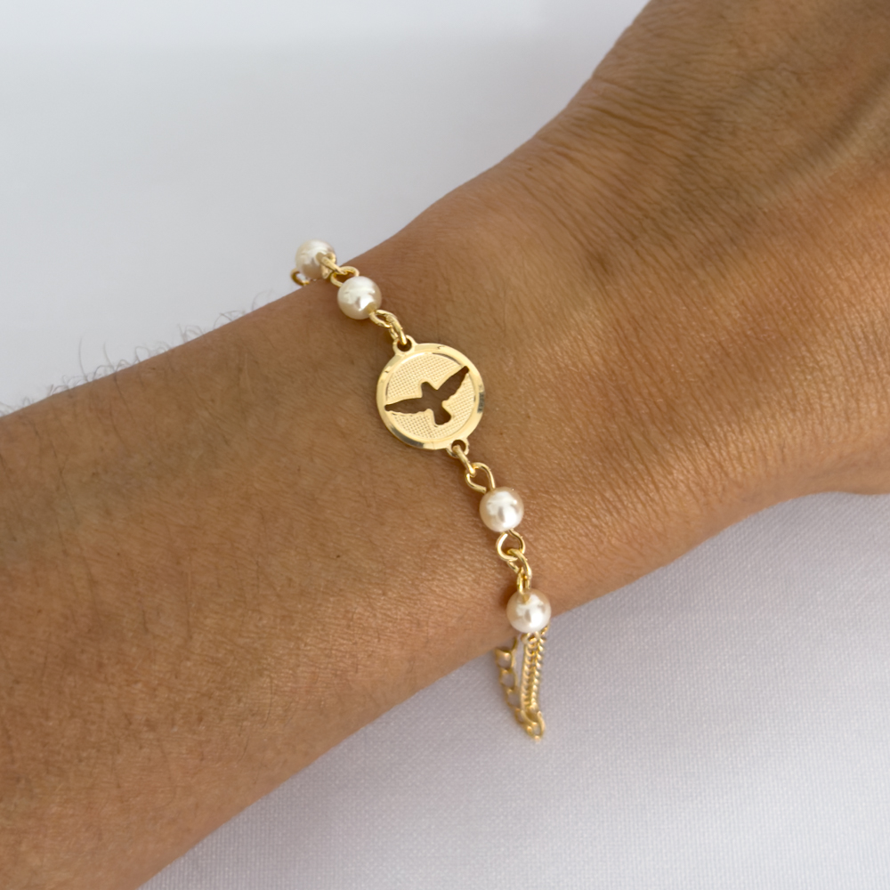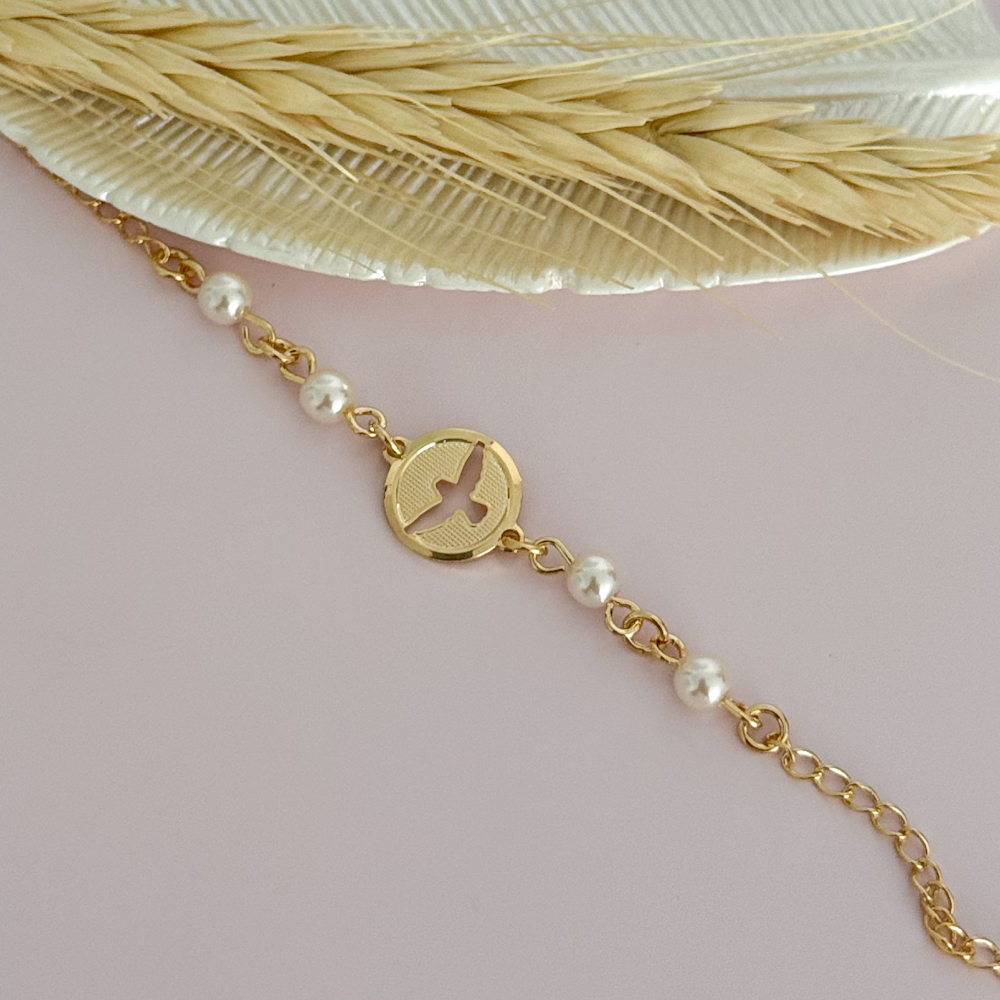 Em até 5x de R$ 23,98 sem juros R$ 107,91no PixEconomize R$ 11,99 no Pix Pulseira Pérolas Pingente Espírito Santo-21cm
