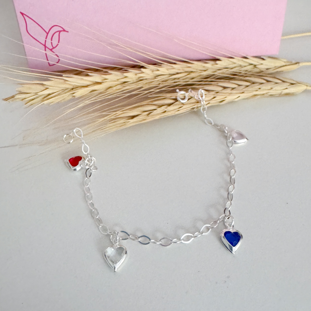 - Modelo: Pulseira Pingentes Corações Coloridos Prata.