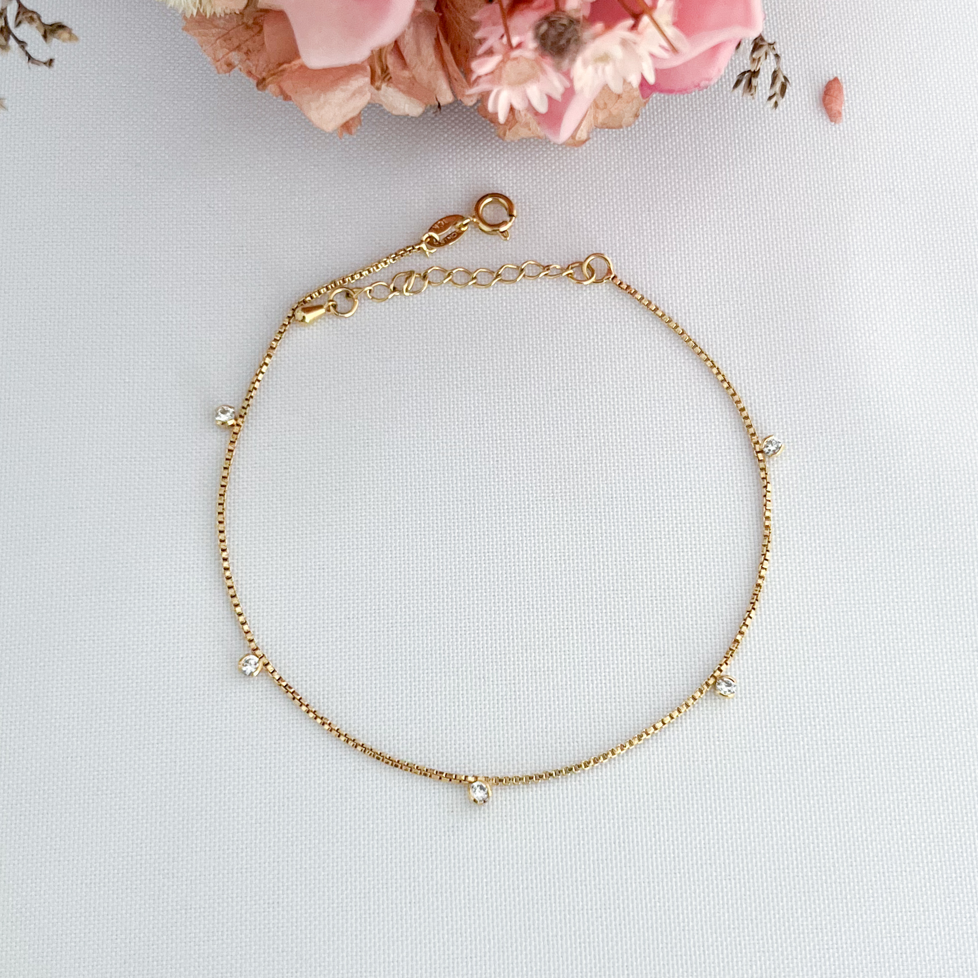 Em até 5x de R$ 19,98 sem juros R$ 89,91no PixEconomize R$ 9,99 no Pix Tornozeleira Pedrinhas Zircônias-25cm