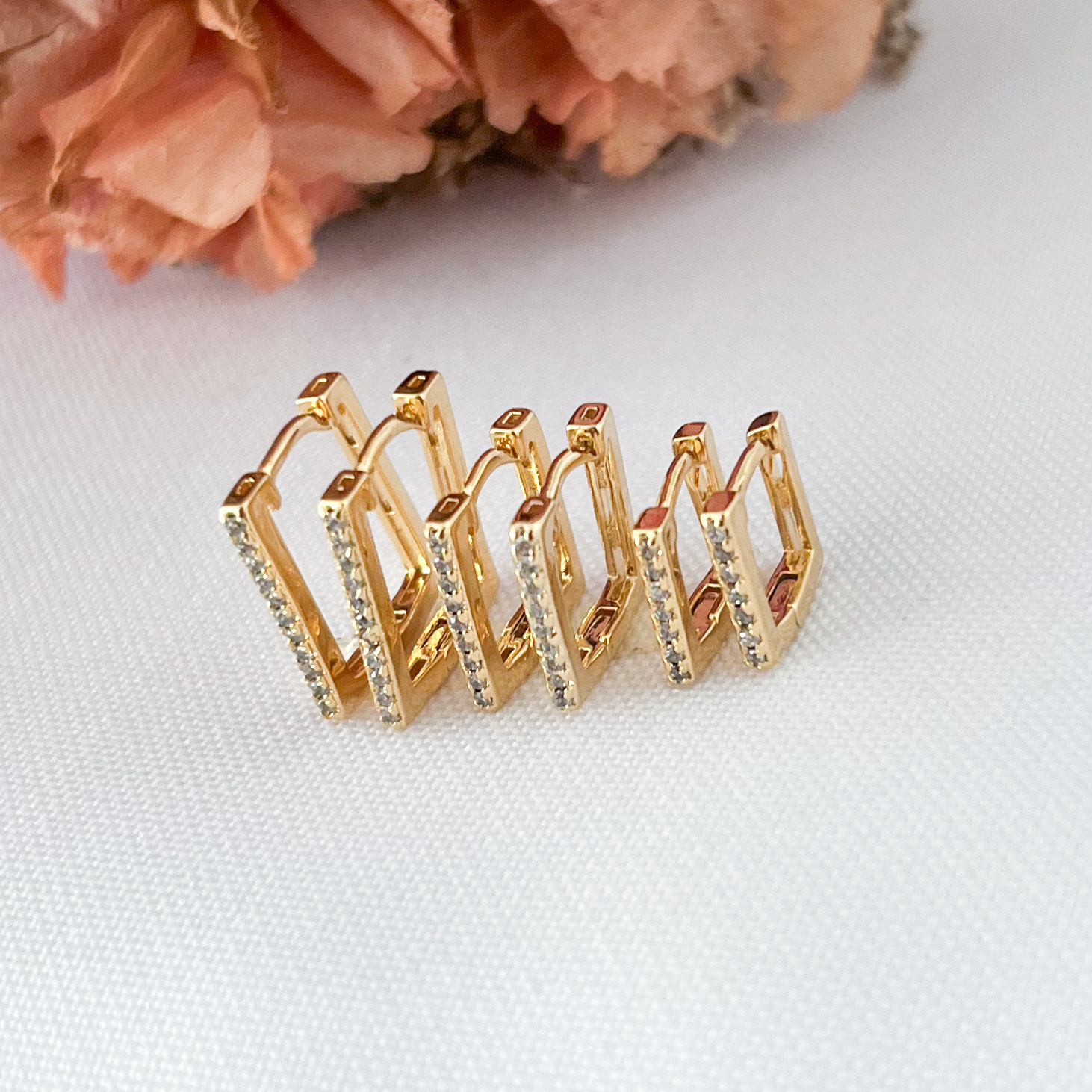 Em até 5x de R$ 9,98 sem juros R$ 44,91no PixEconomize R$ 4,99 no Pix Trio Argola Click Retangular Zircônia